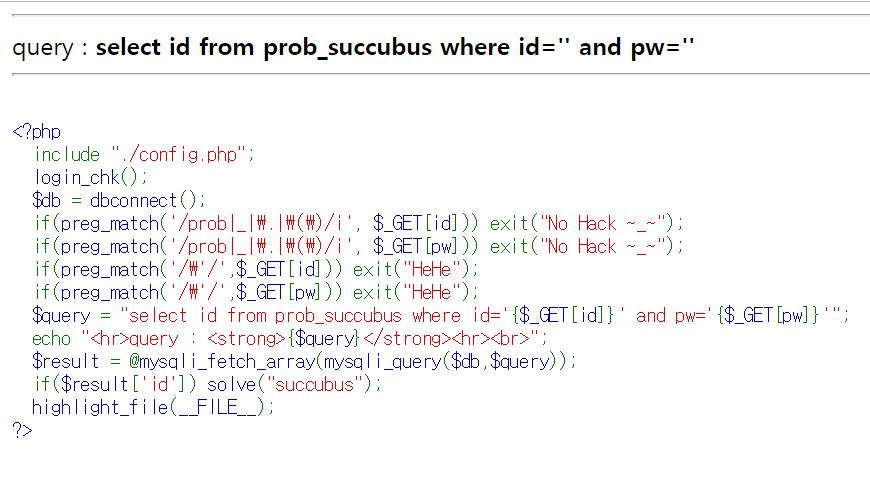 pw 파라미터 값으로 || id='admin 을 넣게 된면 필터링 될테니